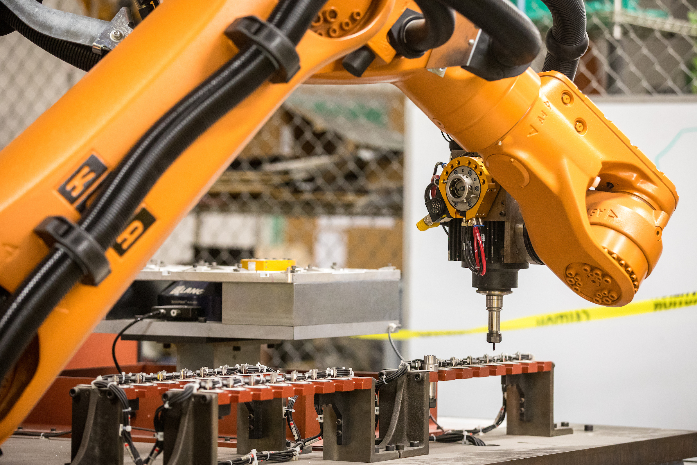 Top photo: The Kuka robotic arm goes through its paces at the Innovation Hub on the Polytechnic campus on May 17, 2018. Photo by Charlie Leight/ASU Now