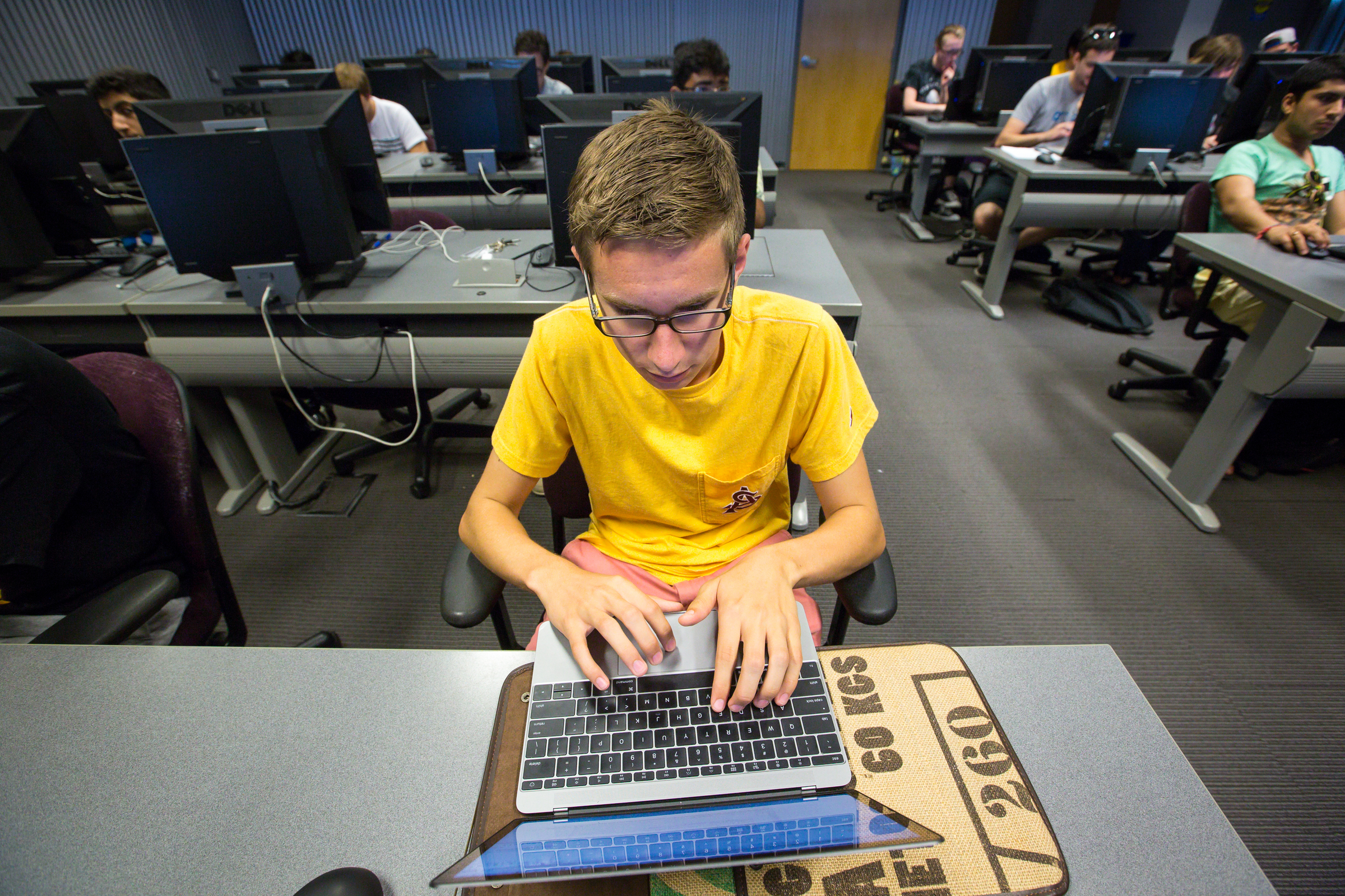 "Year One: Life at ASU" is a periodic photo series following five freshmen navigating their first year at ASU. This installment checks in on Eric Arellano in the classroom setting.