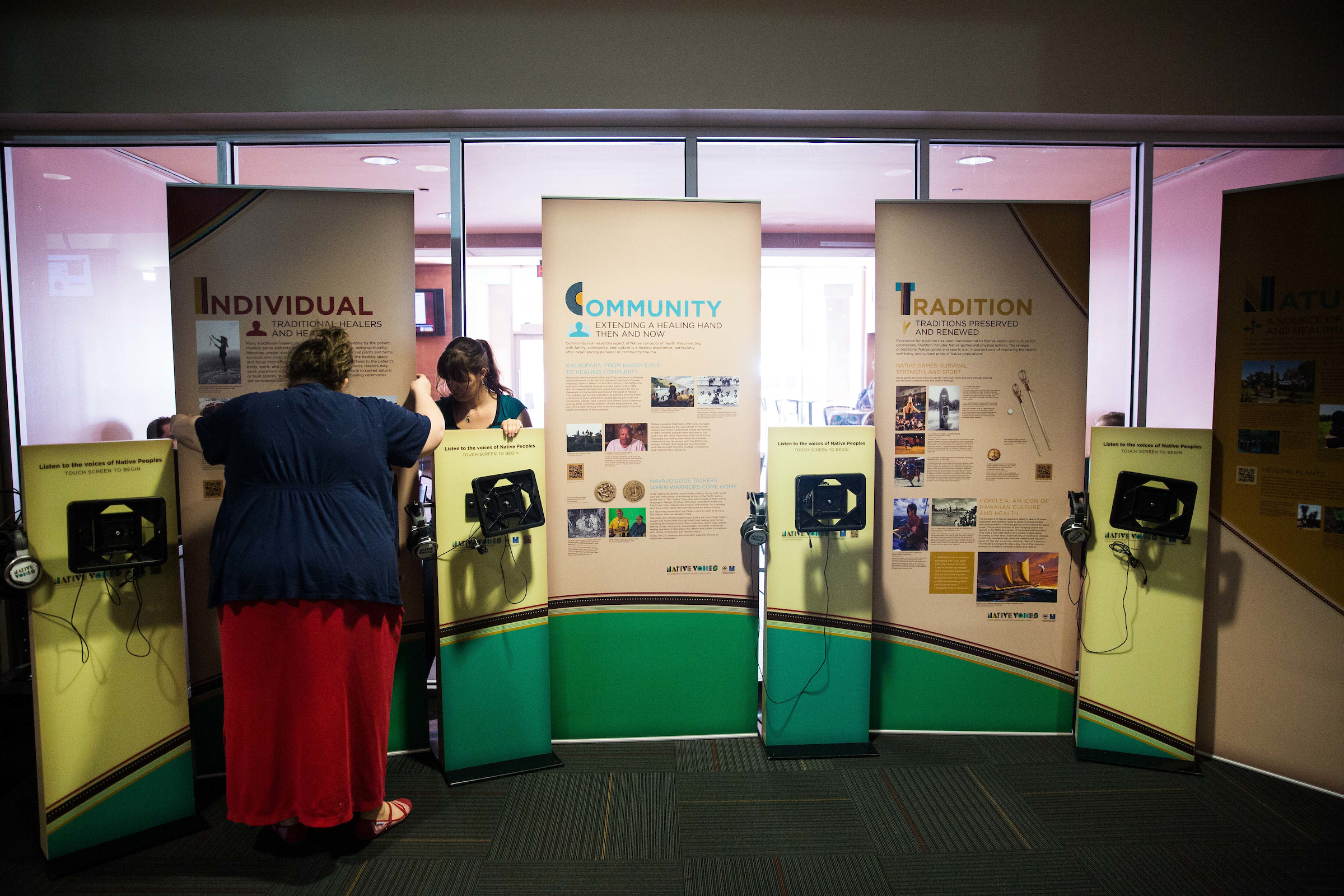 Produced by the National Library of Medicine, the interactive exhibition is made up of six free-standing banners, each with a specific theme. Tablet computers, headphones and tool kits provide videos, images and interviews with more than 100 tribal leaders, healers, physicians and educators.
