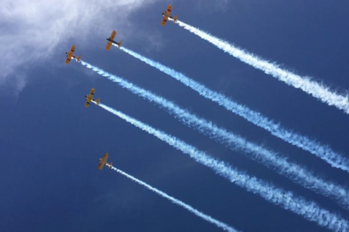 Saturday’s festivities kicked off with a flyover, evoking the original use of the Glendale campus, which was started as a World War II air field. More than 10,000 pilots from 30 countries trained at Thunderbird Field before going off to fight in World War II.