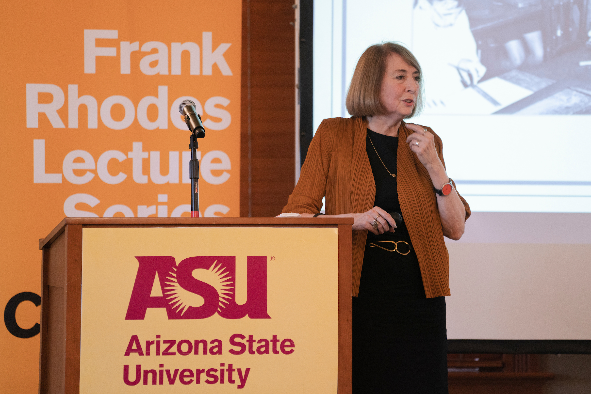Top photo: Cathy Davidson speaks about revolutionizing higher education at Old Main at the Tempe campus. Davidson spoke as a part of the the Frank Rhodes Lecture on "The Creation of the Future: A Lecture Series for a New American University." Photo by Marcus Chormicle/ASU Now