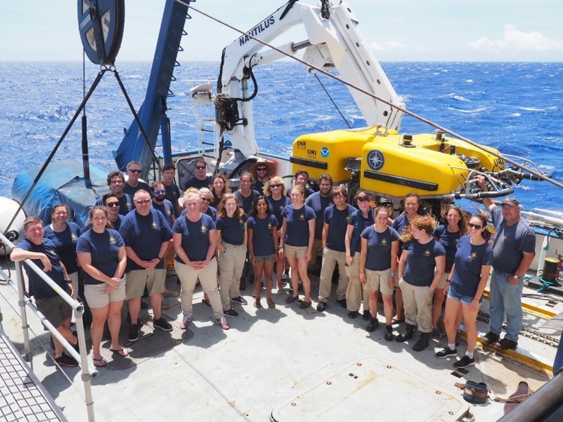 The SUBSEA team exploring seafloor hydrothermal vent fields as analogs of ocean worlds. Credit: Ocean Exploration Trust/Nautilus Live
