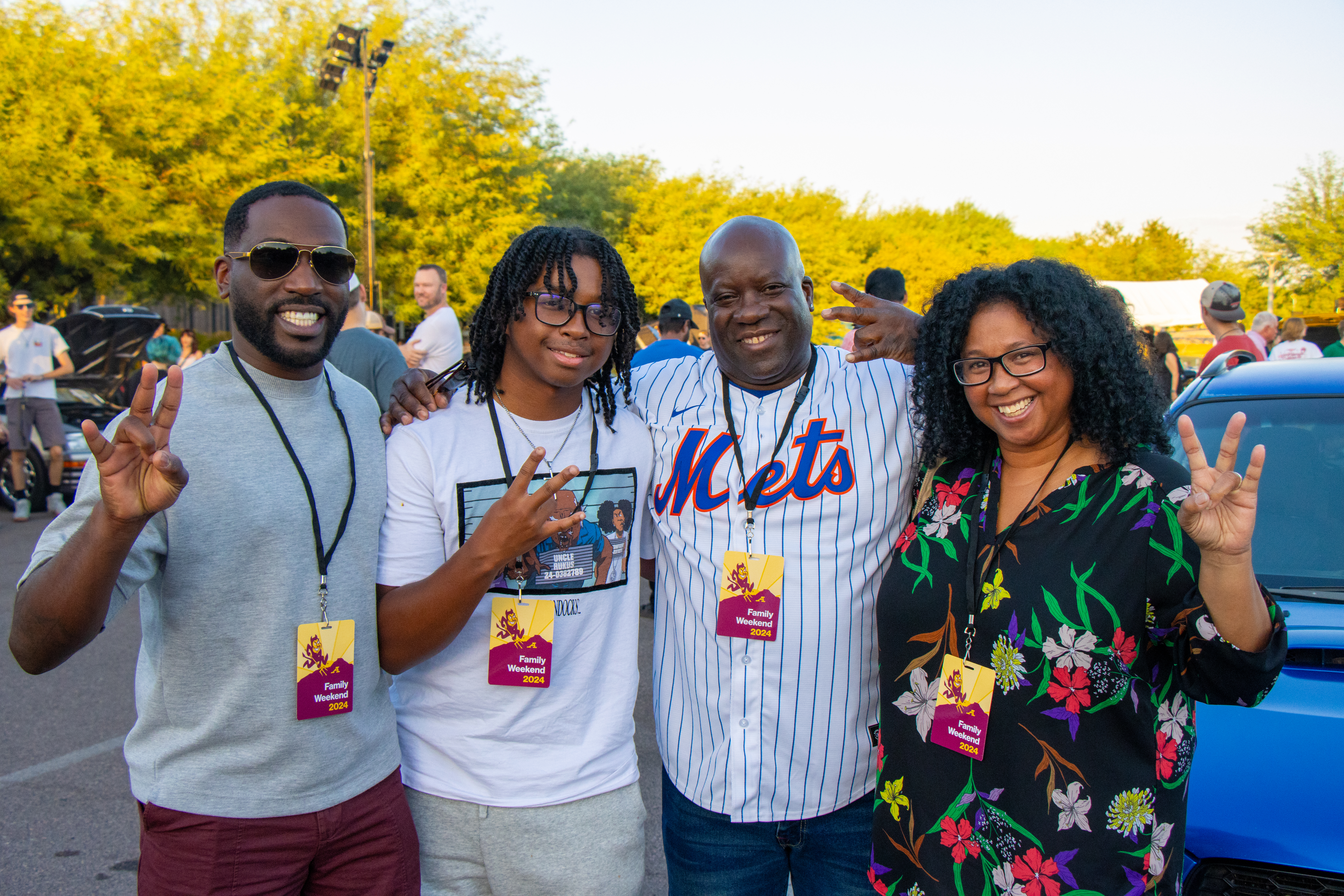 A family shows their ASU pride at Family Weekend in 2024. This year's event runs Friday, Oct. 24–Sunday, Oct. 26. Photo by Autumn Williams/ASU Student Life